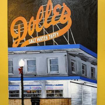The Rehoboth Beach boardwalk is a place that was a source of constant joy for me in my childhood. I have many happy memories of spending days with my Grandfather there. When he passed, it was a place that I visited often to feel closer to him. The boardwalk was crowned by an enormous orange Dolles Candyland sign, promising salt water taffy, lemonade, and other treats. One Christmas, it was announced that the business would be moving from the spot, and the sign with it. It felt like the end of an era, and it felt like the end of childhood. I visited the place one last time. It was around Christmas, cold and quiet.