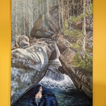 Painted as part of a long project celebrating female deities and spirits in global mythologies. 2023: Exhibited in the "Her Voice, Her Vision" group show at the Hal Gomer Gallery, Chesapeake Arts Center, Brooklyn Park, Maryland.
