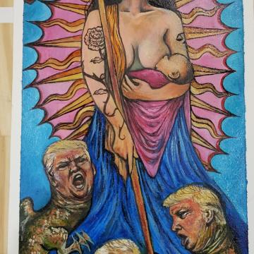 A small painting on paper in preparation for a much larger piece.